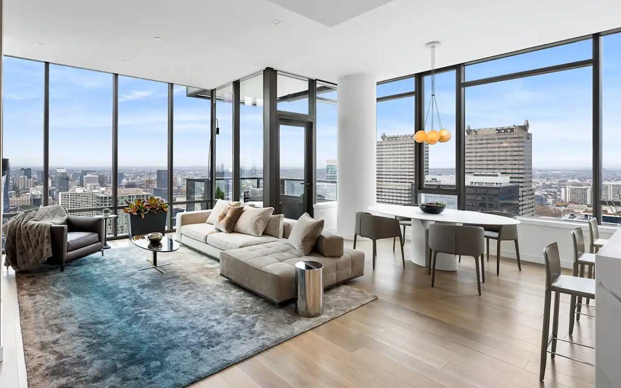 The Estate Residences, with 2 residences per floor, range from 3,622 to 4,652 SF each. The City View Estate faces north and features nearly 4,000 SF of living space. The Park View Estate faces south overlooking Rittenhouse Square and features nearly 5,000 SF of living space. These expansive units include multiple balconies allowing residents to enjoy glorious panoramic views at sunrise and sunset.